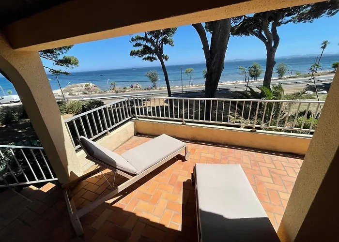 A Au Bord De Mer A Hyeres Les Palmiers Vila à beira-mar está a 6 minutos a pé de Aquavillage PARC e convida os hóspedes a desfrutar de terraço.